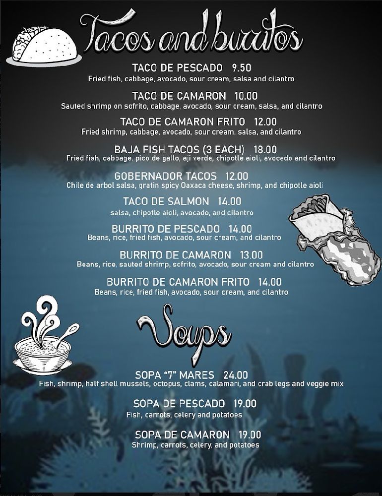 Shrimp sauteed with onion, bell peppers, shredded cabbage, tomatoes, cilantro, avocado, white and devil sauces. 2 pieces tacos per order.