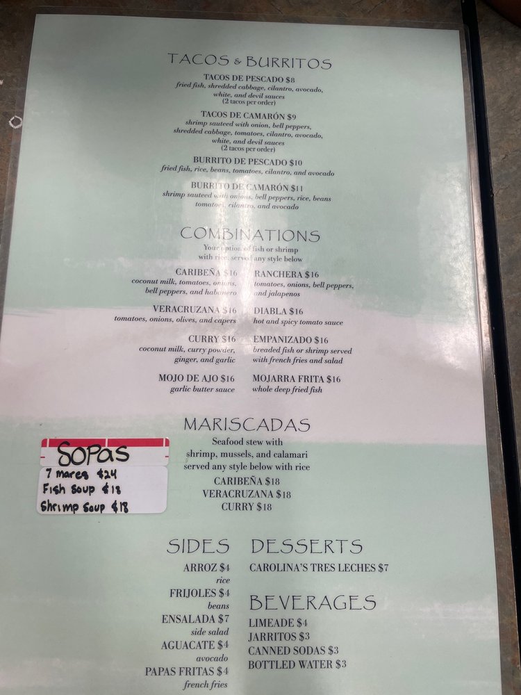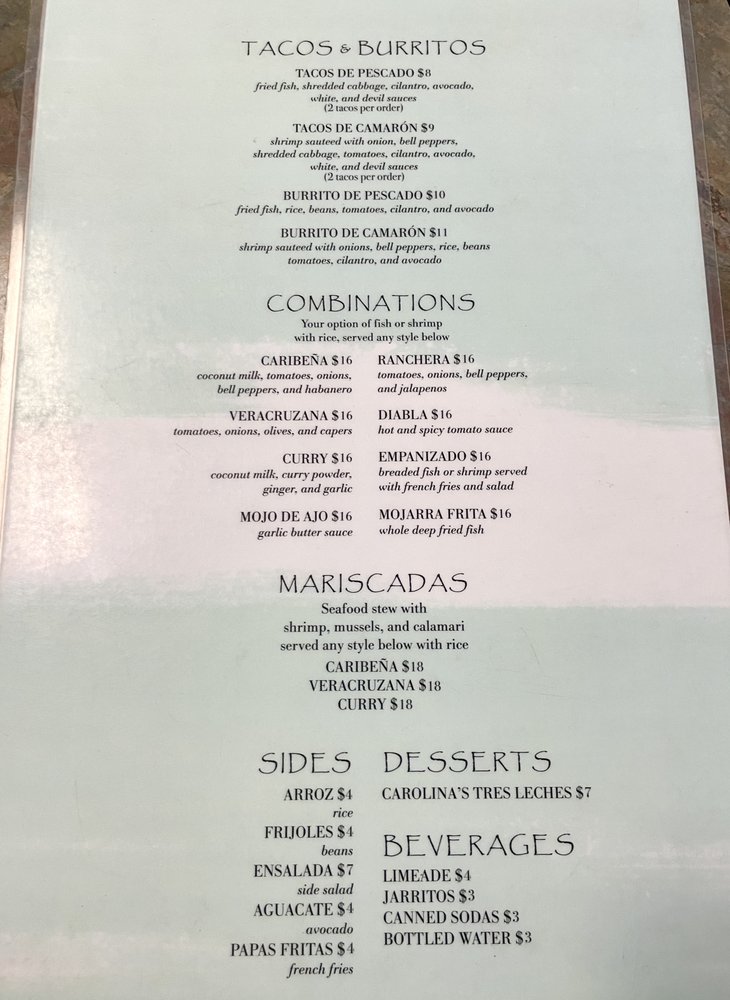 Coconut milk, tomatoes, onions, bell peppers and habanero sauce with your choice of shrimp or fish and rice